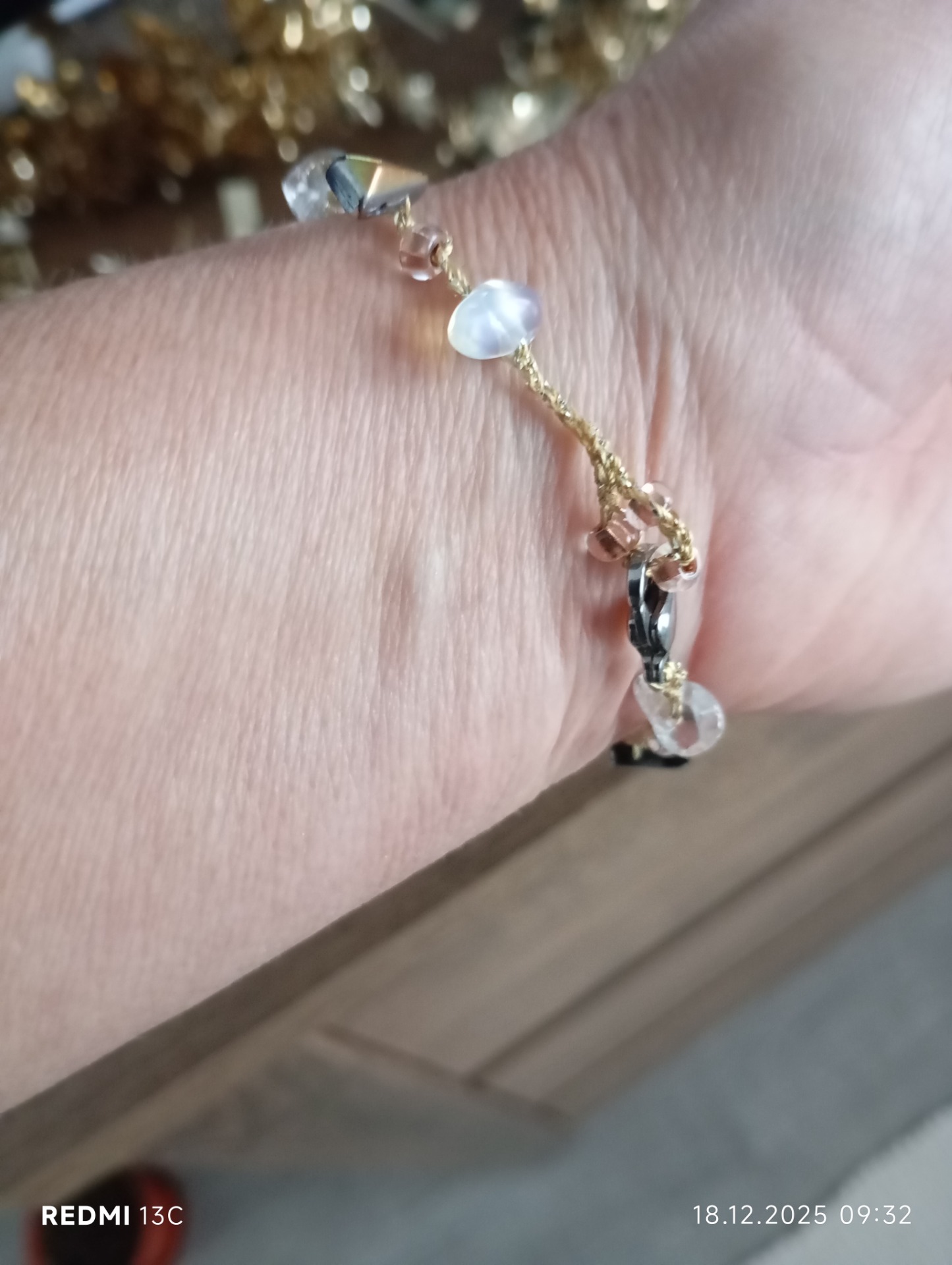 skleněné korálky, kristal, metalická příze, ručně háčkovaný, na zapínání, na každou ruku