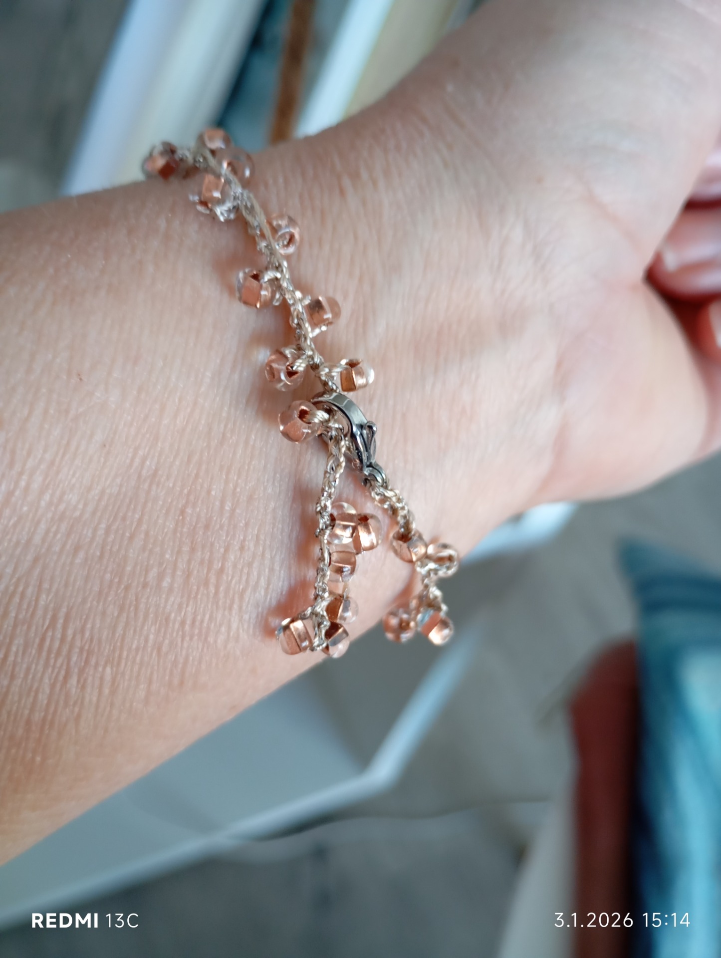 Ručně háčkovaný, skleněné korálky, na zapínání