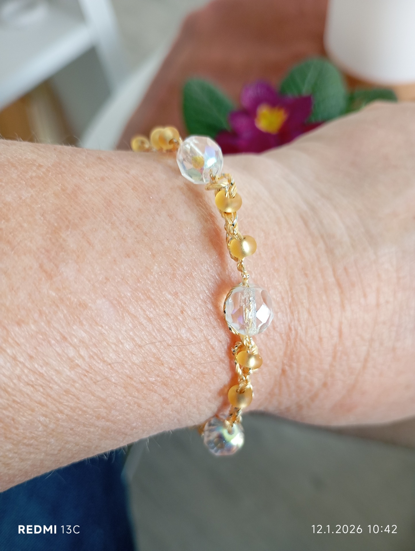 ručně háčkovaný, skleněné korálky, na zapínání