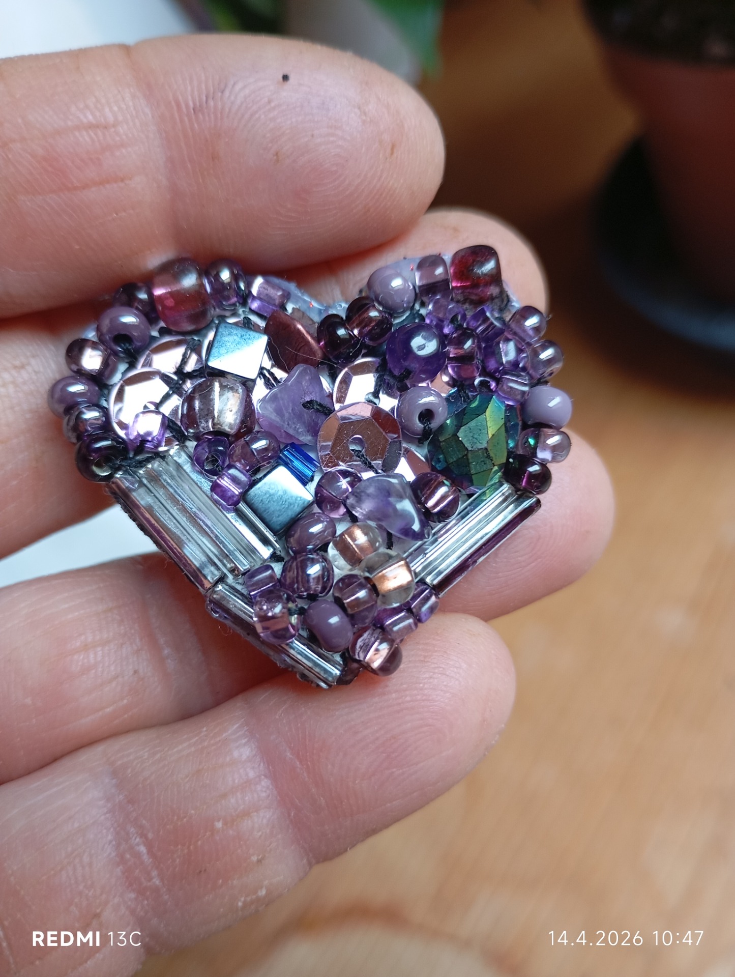 Ručně vyšívaná brož, skleněné korálky, na zapínání